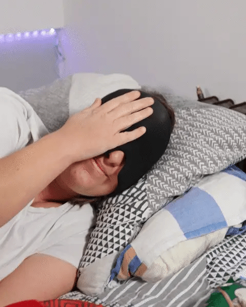 Many customers doze off while wearing it because the compression and darkness are so relaxing. If you sleep in it, make sure it feels comfortably cool, not painfully cold. If you ever feel numbness or excessive cold, remove it and let your skin warm back up.